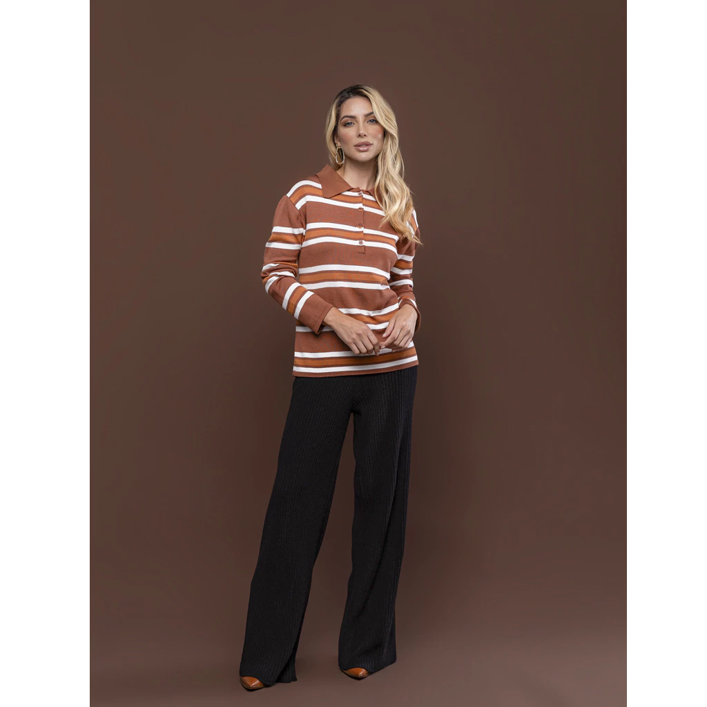 Transforme seu visual com a Blusa Tricot Gola Polo Listrada Rayssa!