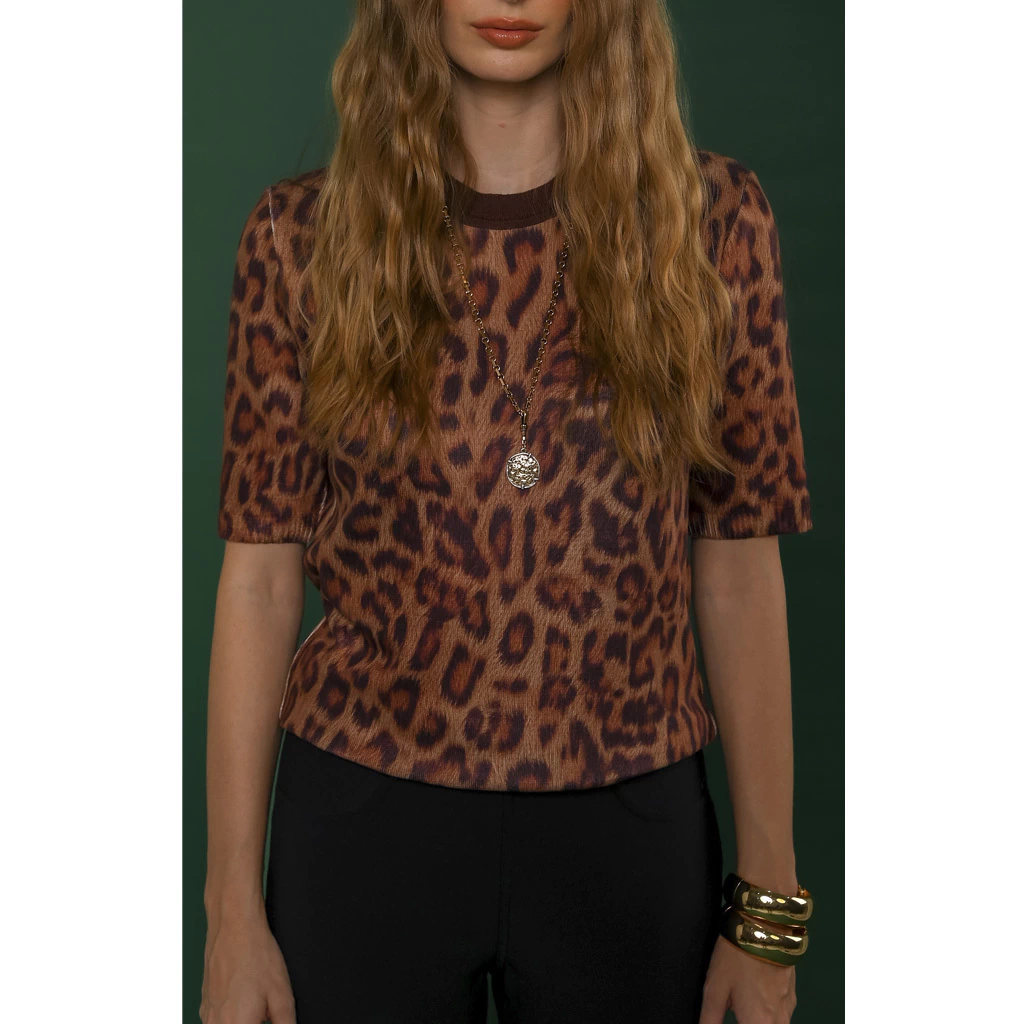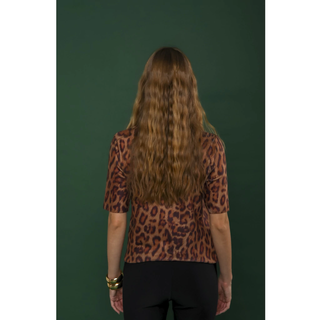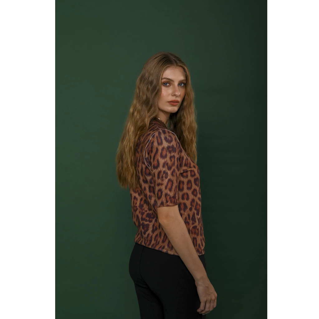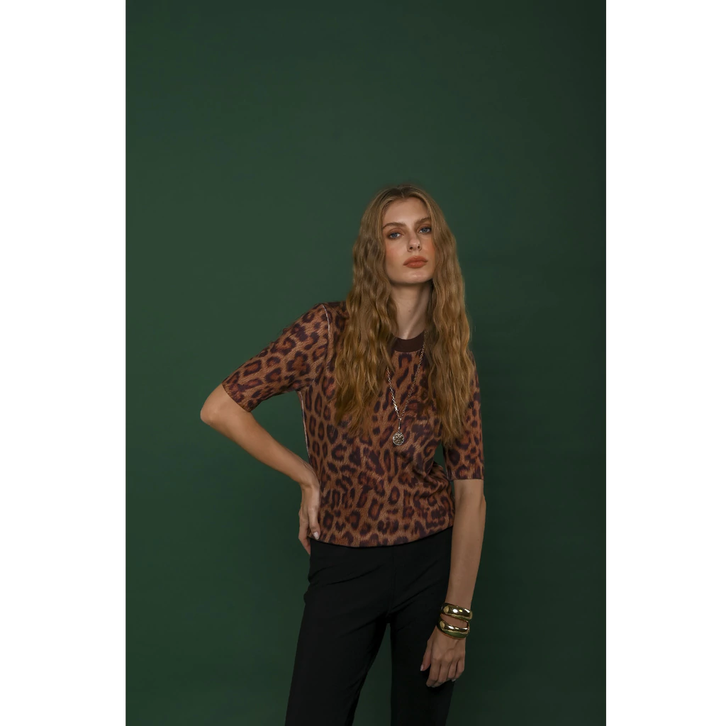 Blusa Tricot Manga Curta Elisa – a peça que faltava para transformar seu visual! Com estampa leopardo irresistível, essa blusa em tricot combina estilo e conforto em cada detalhe.