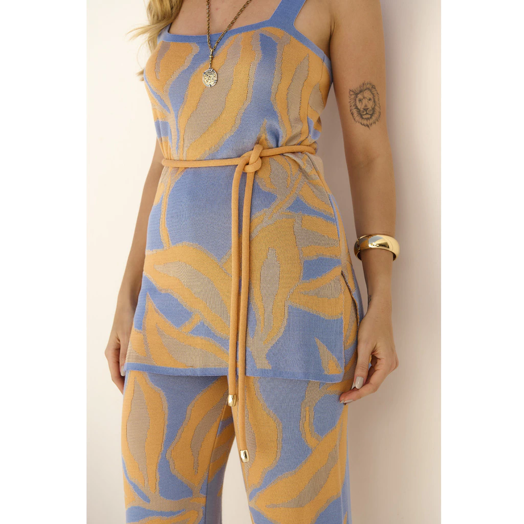 Encante-se com o Conjunto em tricot calça e regata + cinto que traz a delicadeza do floral combinada com o toque macio do tricot. Perfeito para quem busca um look sofisticado e cheio de personalidade!
