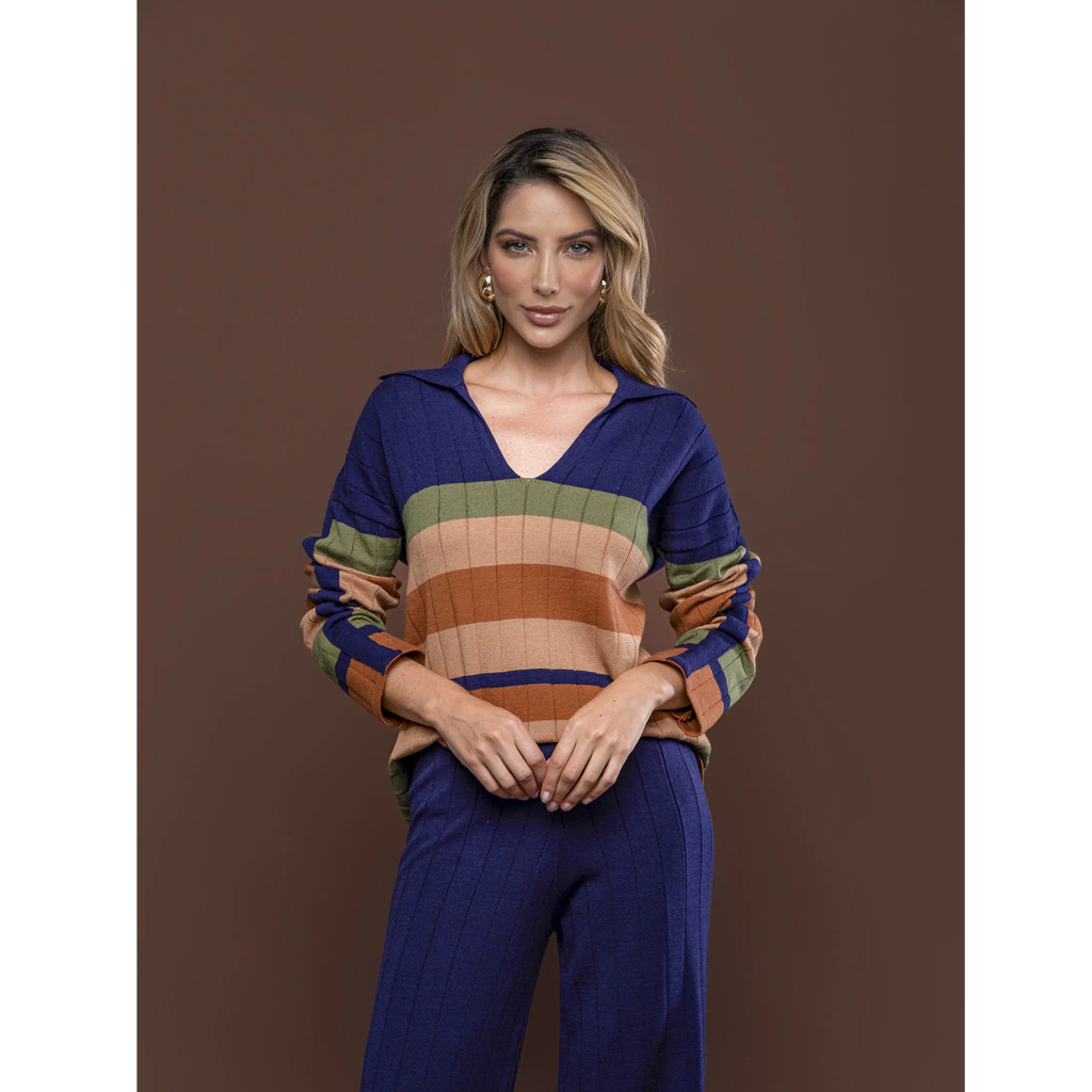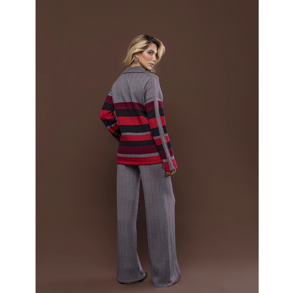 Encante-se com o Conjunto Tricot Gola Polo Maria Gabriella! Esta peça é a combinação perfeita de estilo e conforto, ideal para mulheres que desejam brilhar em qualquer ocasião.