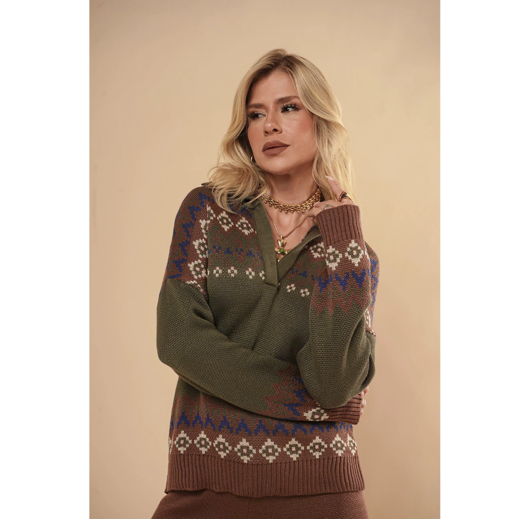 Descubra o conforto e a sofisticação do Conjunto Tricot Jacquard Ana Carolina, perfeito para compor looks elegantes e modernos. Composto por blusa e calça em tricot de alta qualidade, apresenta um design jacquard que valoriza seu estilo com um toque exclusivo. Ideal para ocasiões casuais ou mais elaboradas, este conjunto é a escolha certa para quem não abre mão de charme e aconchego. Realce seu guarda-roupa com essa peça que une beleza e conforto em perfeita harmonia!