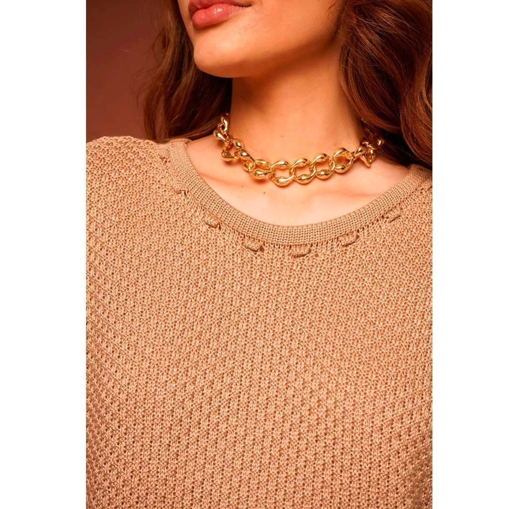 Transforme seu estilo com o Conjunto em Tricot Links Aurora! Esta peça única traz uma blusa com detalhes desenhados na barra, perfeita para quem deseja um toque de charme e sofisticação.