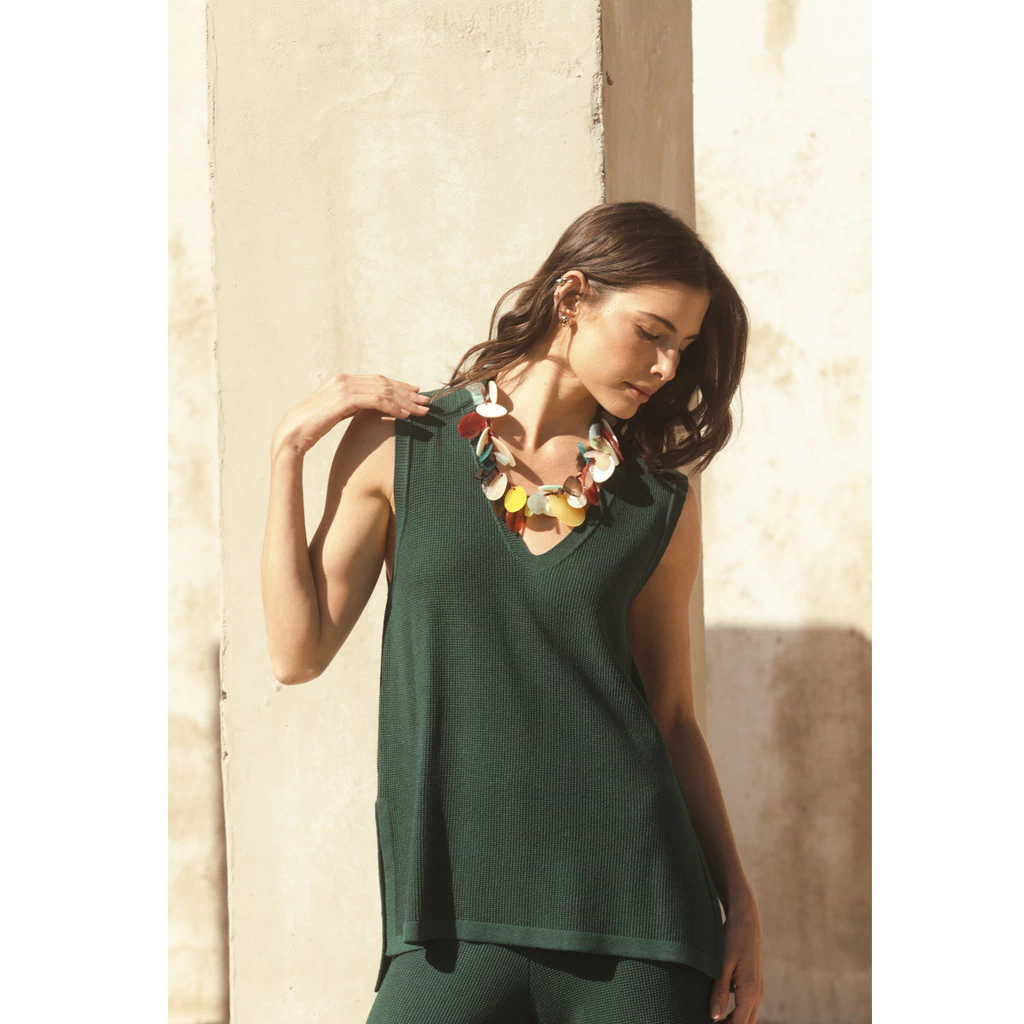 Com design minimalista e toque contemporâneo, este conjunto é uma peça-chave para transformar seu guarda-roupa. Seja para um passeio ou um encontro especial, destaque-se com o conforto e a elegância do Conjunto Tricot Regata Kiara.