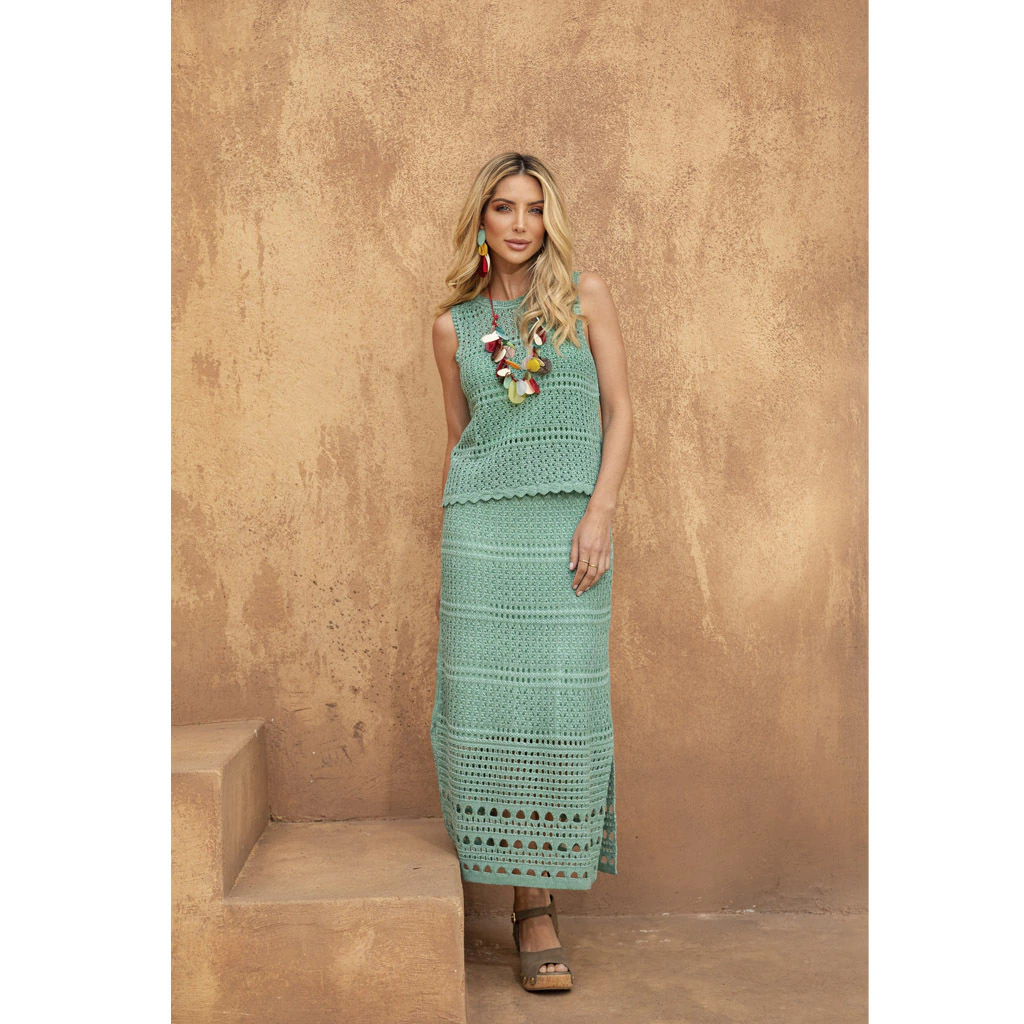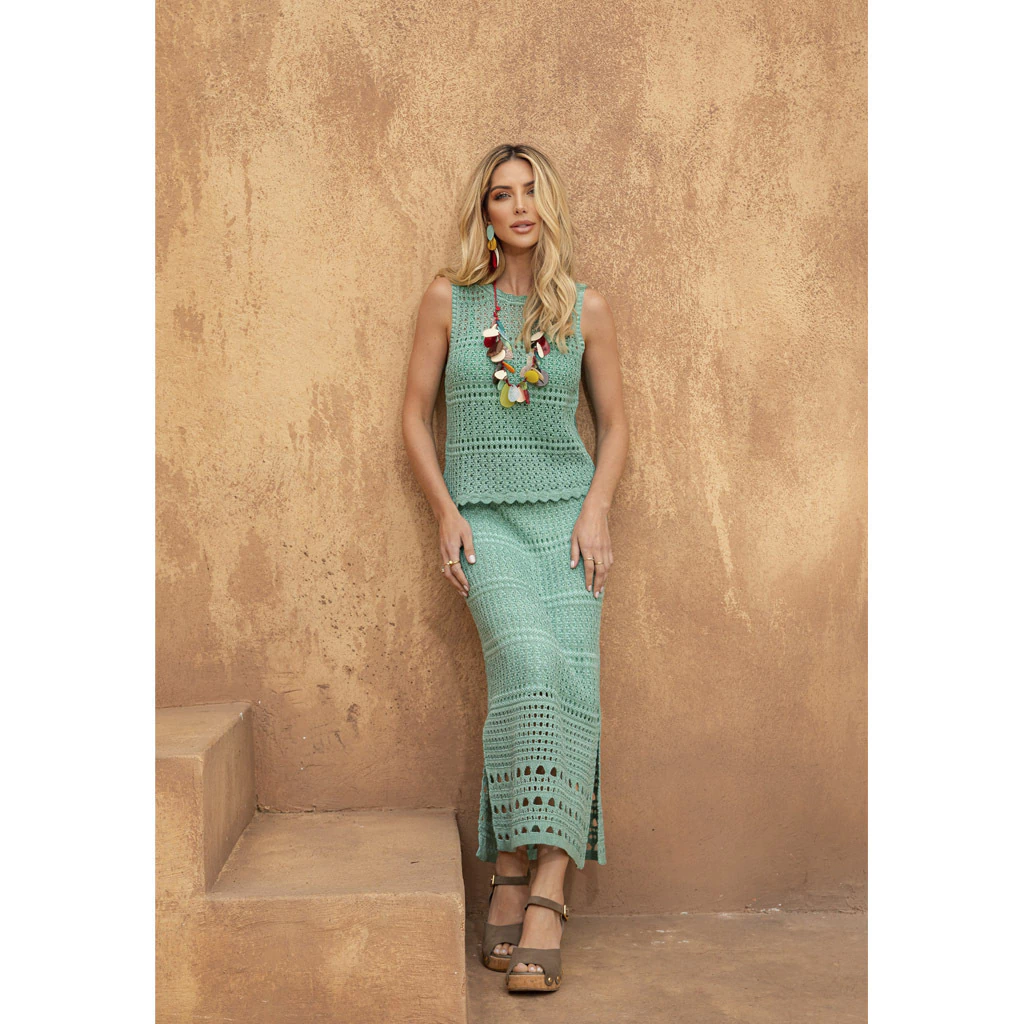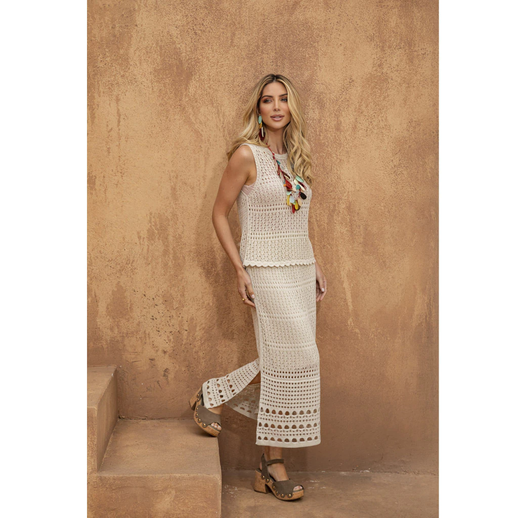 Encante-se com o Conjunto em Tricot Rendado Saia + Regata Erica, a escolha perfeita para quem busca um visual sofisticado e cheio de charme.