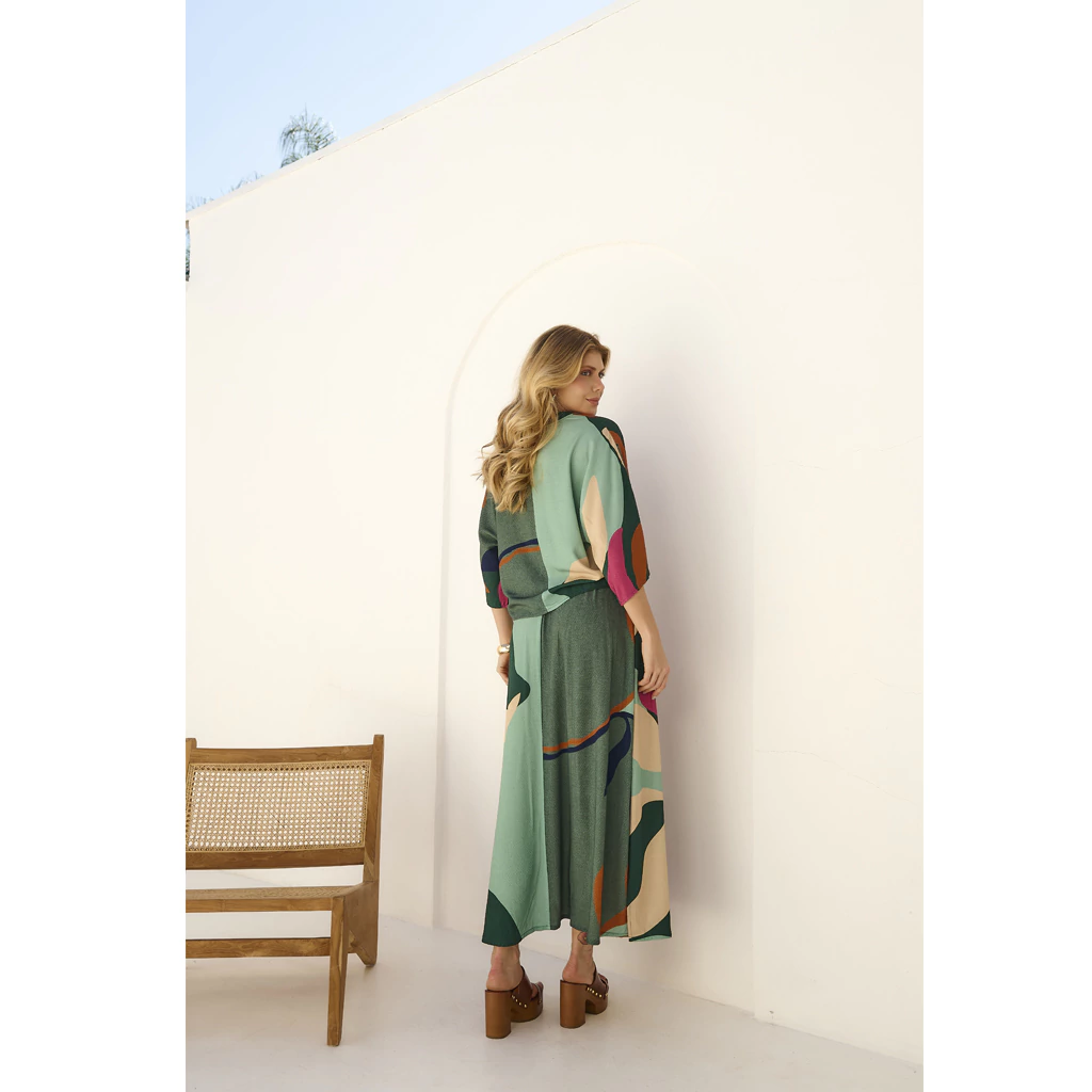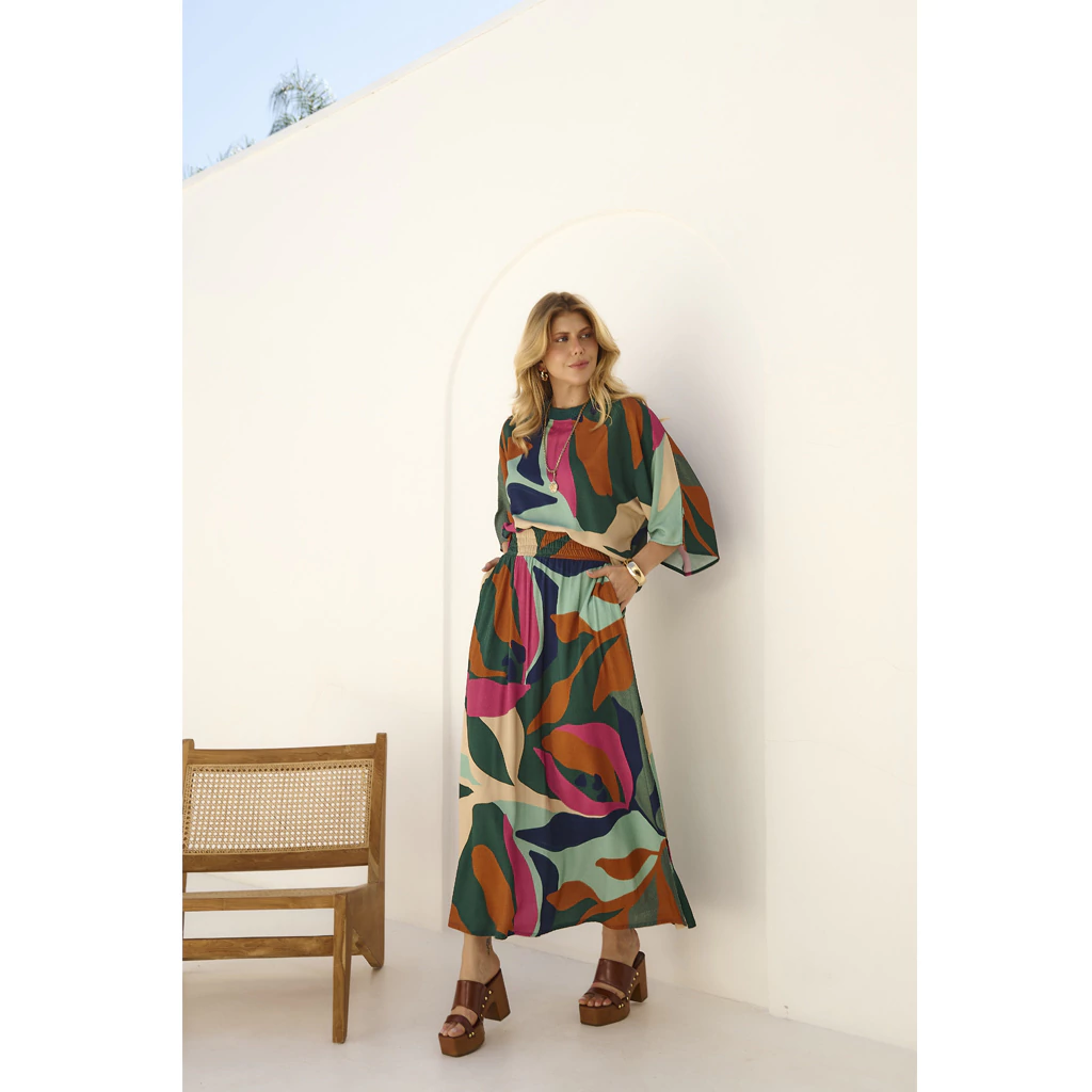 Confeccionada em viscose leve e estampada, essa saia proporciona um caimento fluido que valoriza sua silhueta. Os bolsos laterais agregam praticidade sem perder a sofisticação, tornando-a ideal para o dia a dia ou ocasiões especiais.