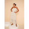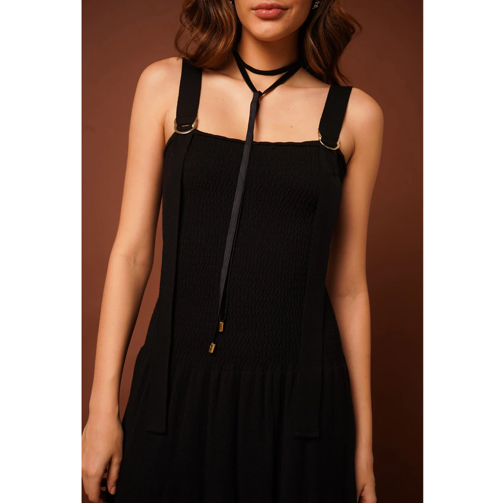 Encante-se com o Vestido em Tricot com busto em lastex, uma peça que combina conforto e estilo boho.