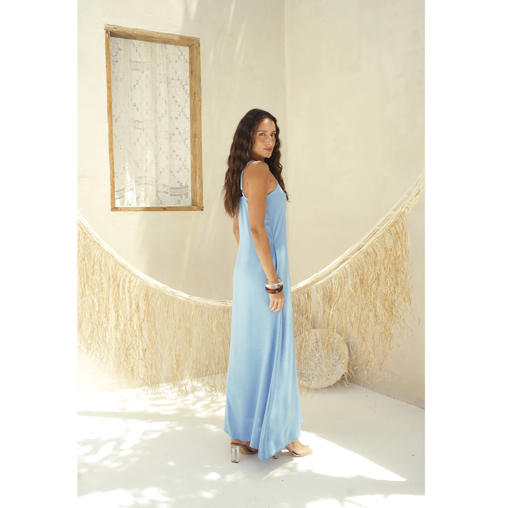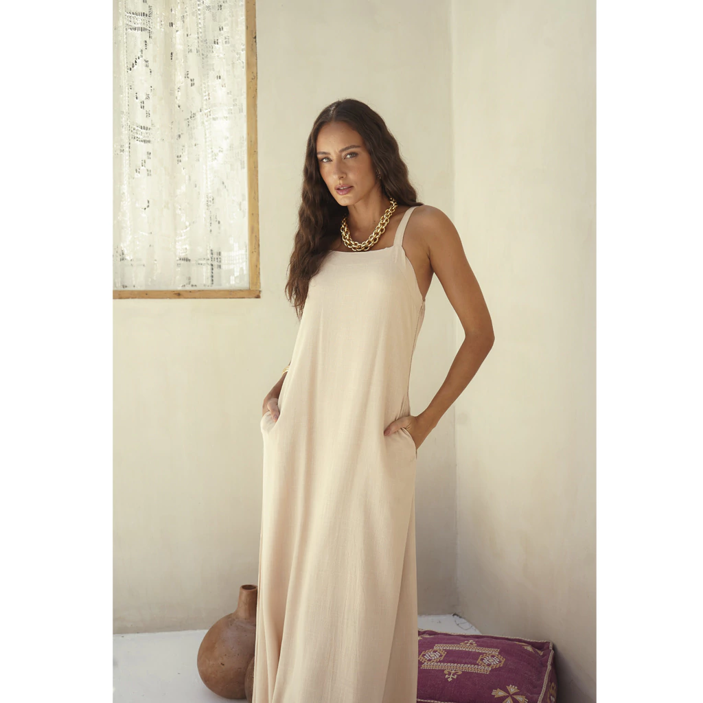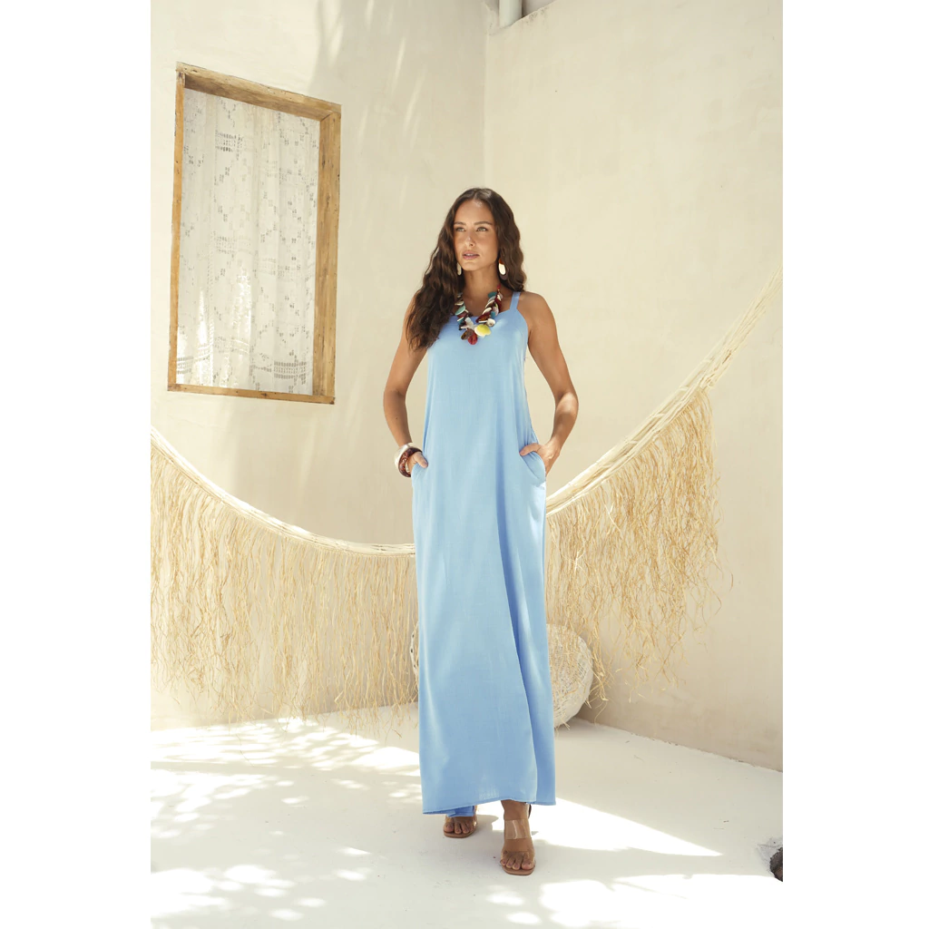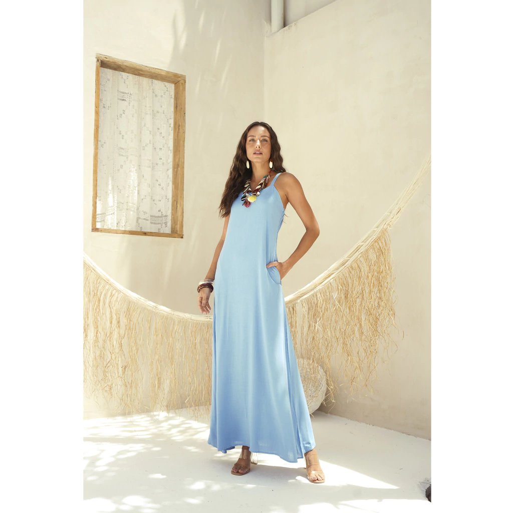 Pensando no seu dia a dia, o modelo conta com bolsos funcionais, que além de práticos, adicionam um toque moderno e descontraído à peça. O corte fluido e o comprimento longo garantem um caimento leve e elegante, perfeito para diversas ocasiões – do passeio casual ao evento especial.