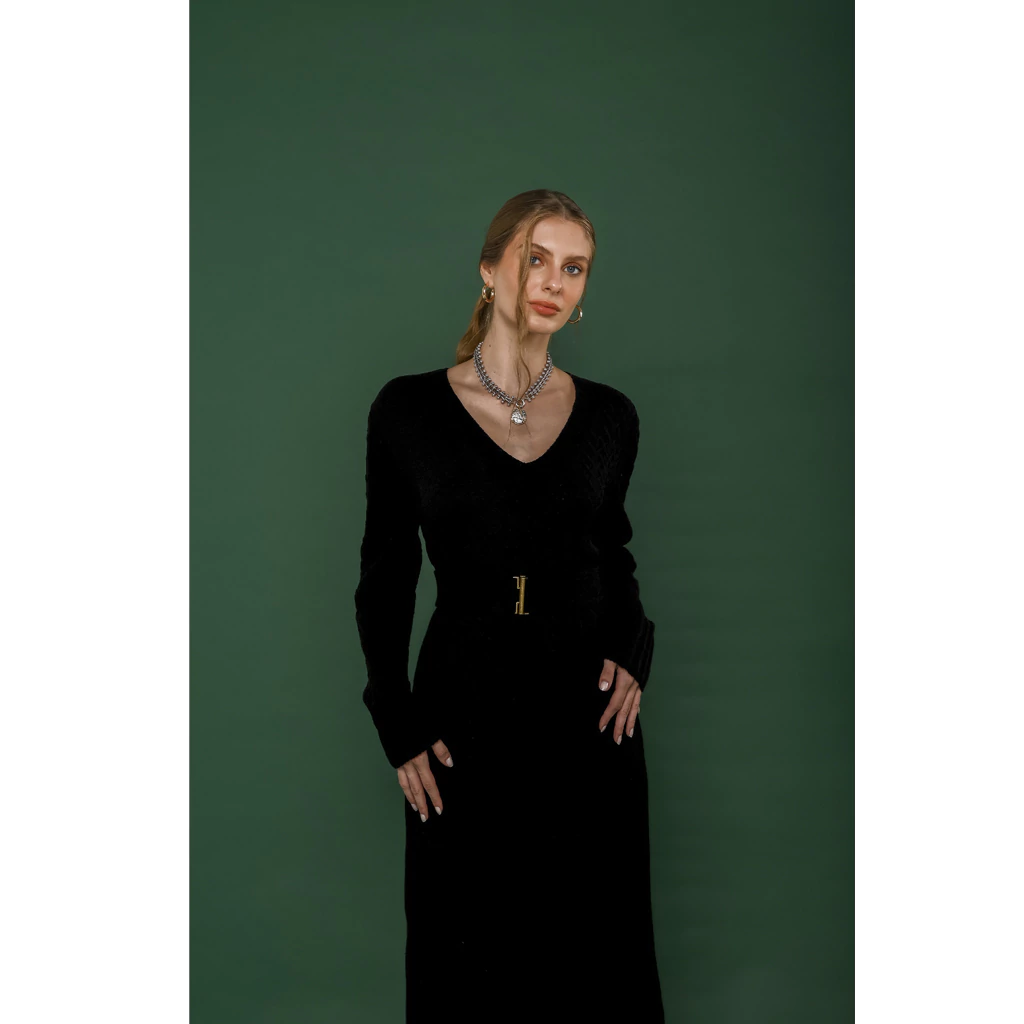 Descubra a elegância do Vestido em Mousse que realça sua silhueta com um deslumbrante decote V. O cinto ajustável valoriza a cintura, oferecendo um caimento perfeito para qualquer ocasião.