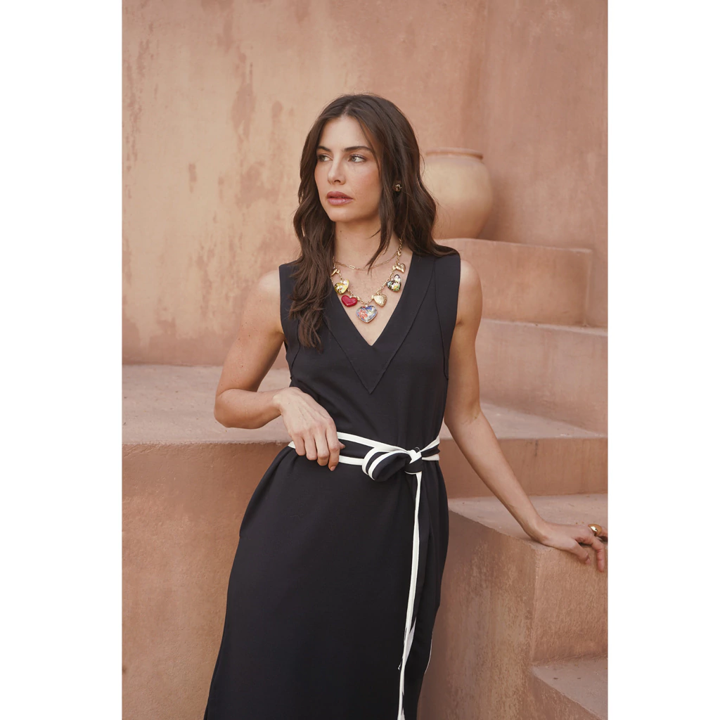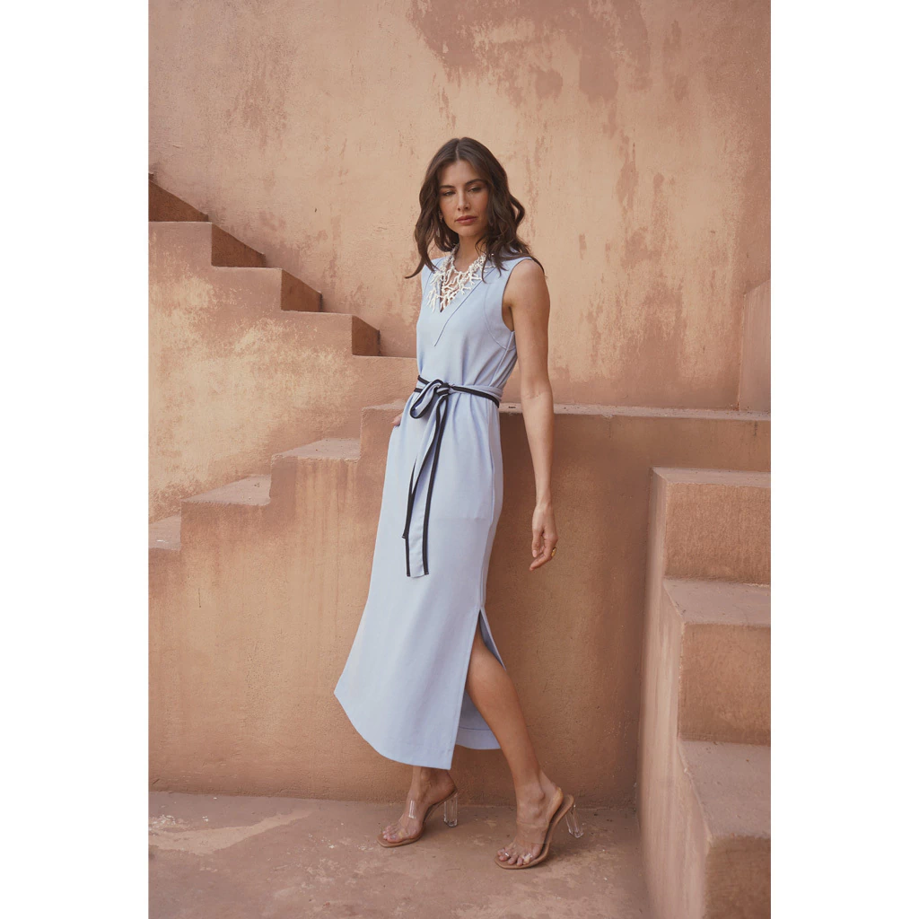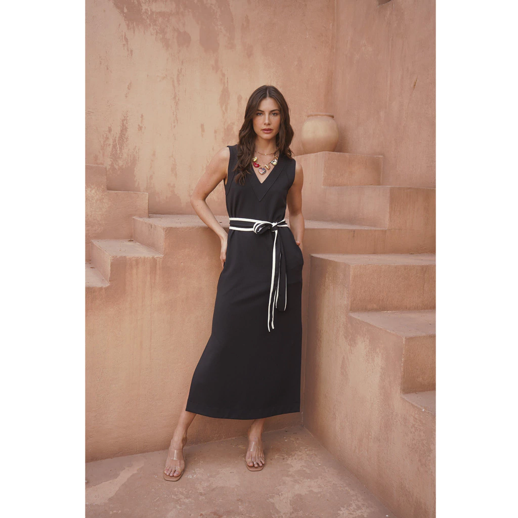 Descubra a elegância e o charme do Vestido Regata Decote V Com Cinto, a escolha perfeita para quem deseja um visual sofisticado e moderno!