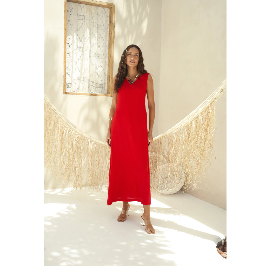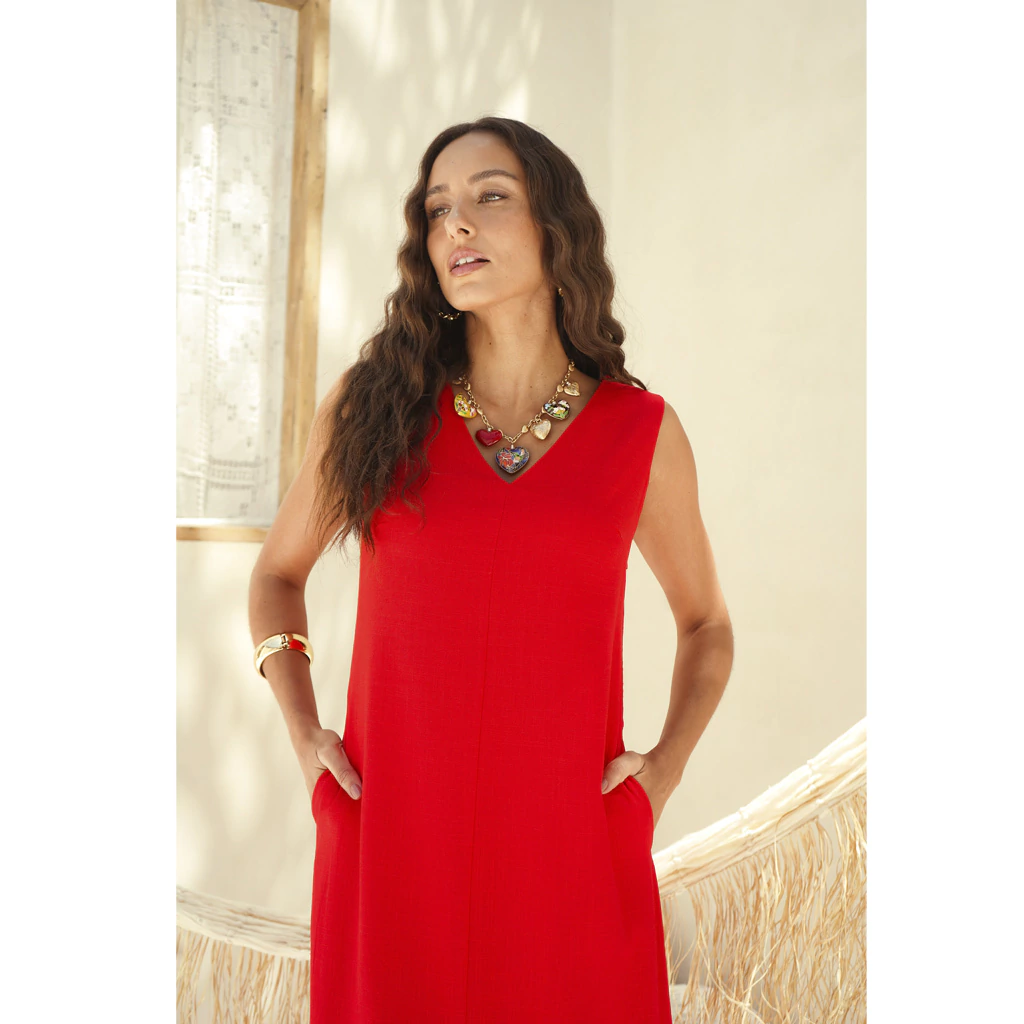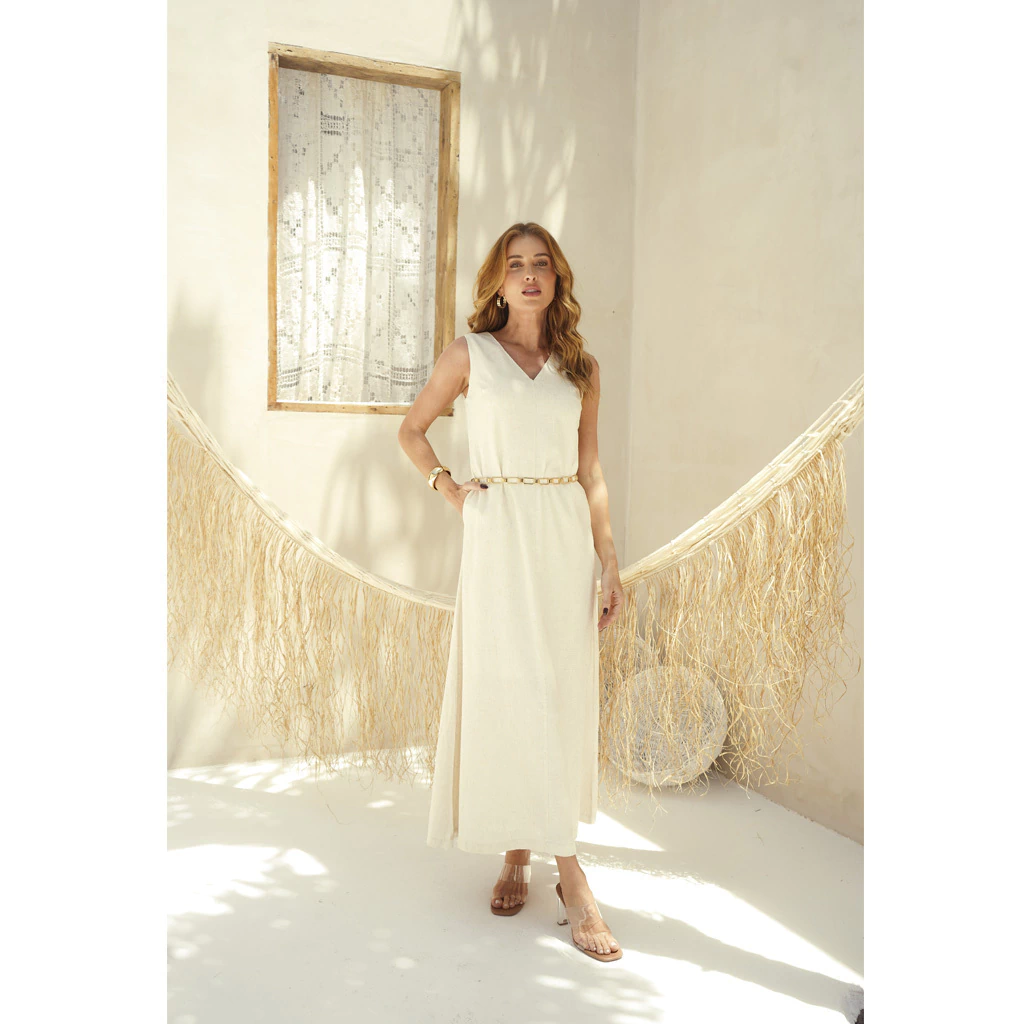Vestido Reto Decote V Tereza – Elegância com Praticidade