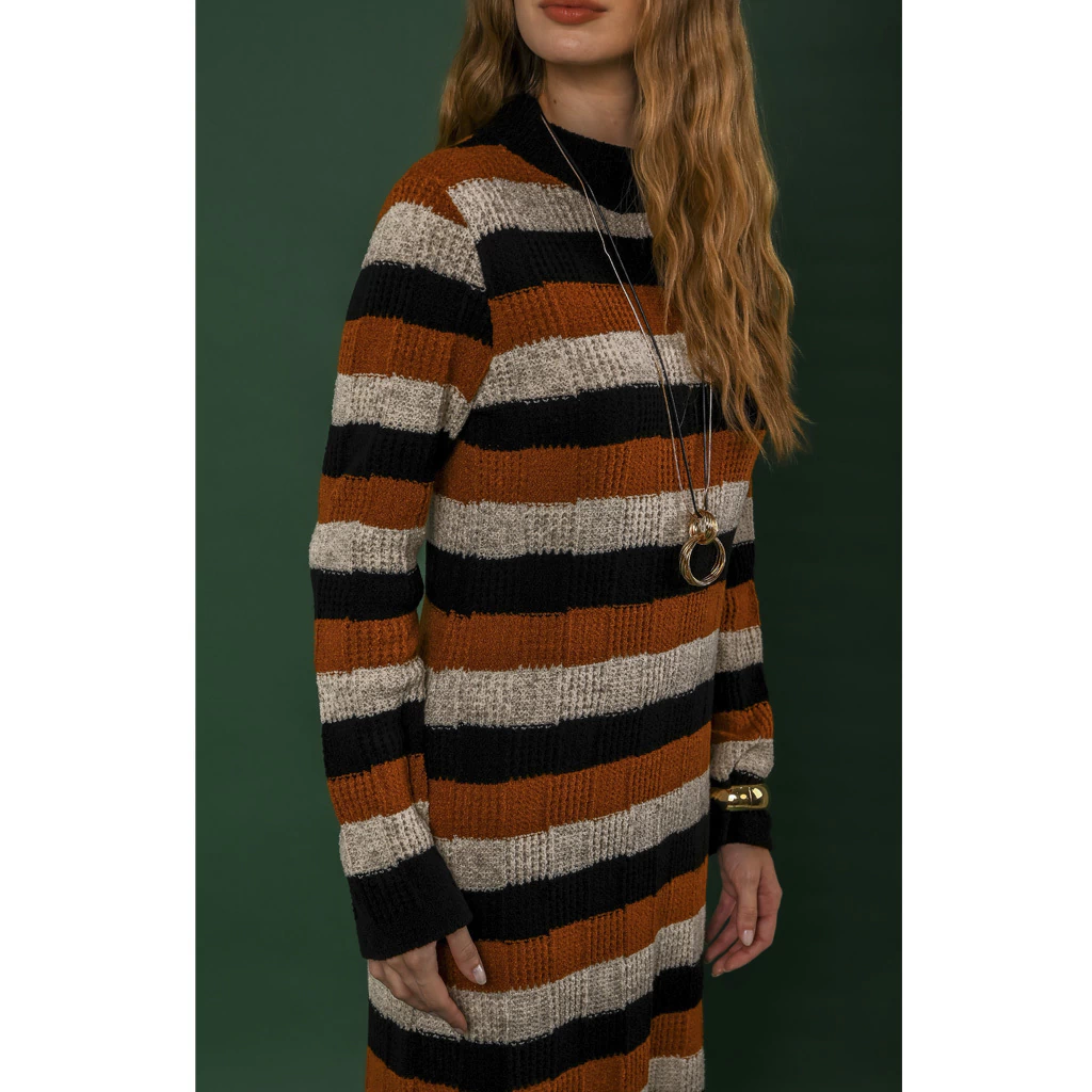 Adicione um toque de charme ao seu guarda-roupa com o Vestido de Tricot no Mousse com Listras Juliane! 🌟